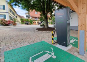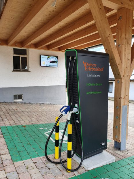 Der Strom für die HPC (High Power Charging) Station kommt zu 100 % aus unserer Biogasanlage, d.h. aus der Gülle unserer Kühe gewinnen wir CO²-neutral den Strom für die Ladestation.